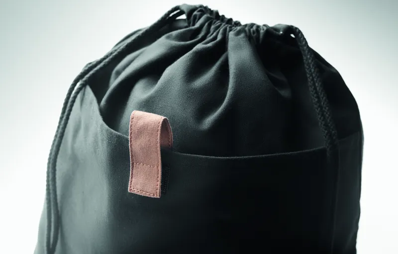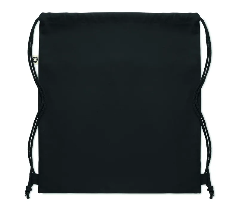 Újrahasznosított pamutból készült húzózsinóros táska, 50% pamut és 50% újrahasznosított pamut zsinórral. 220 g vastag anyag.