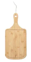 Természetes formájú tálalódeszka bambuszból, vájattal és juta kötéllel. A bambusz természetes anyag, színében, mintázatában és méretében esetenként eltérő lehet.