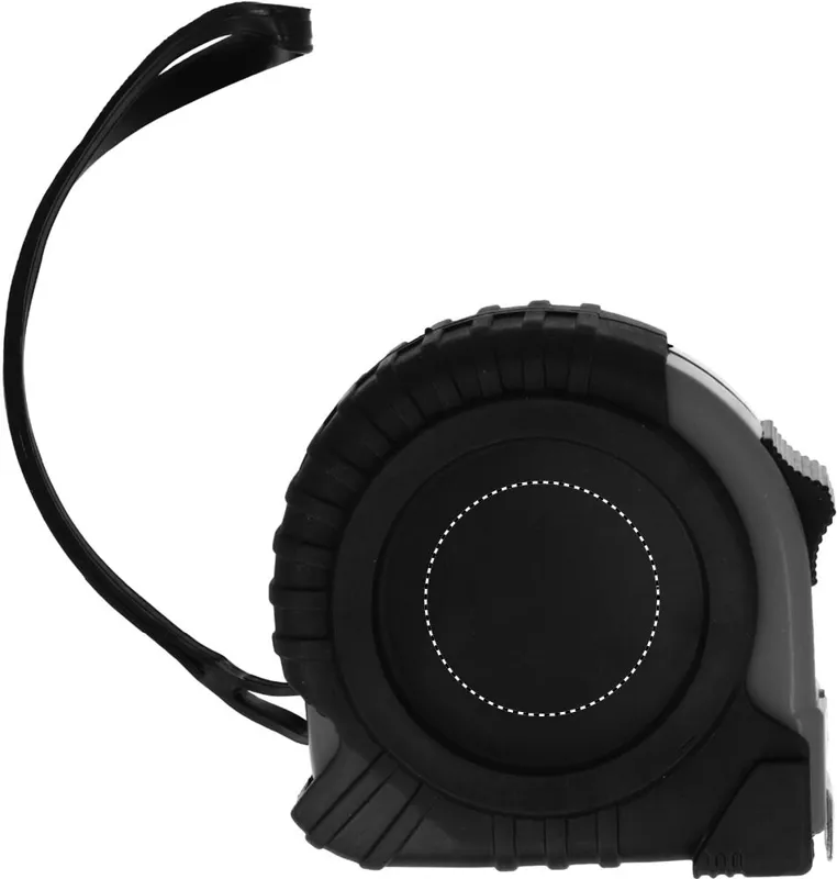 5 méteres mérőszalag piros házzal. ABS anyagból. Csuklópánttal és fényes, ezüstös, övre akasztható csíptetővel.