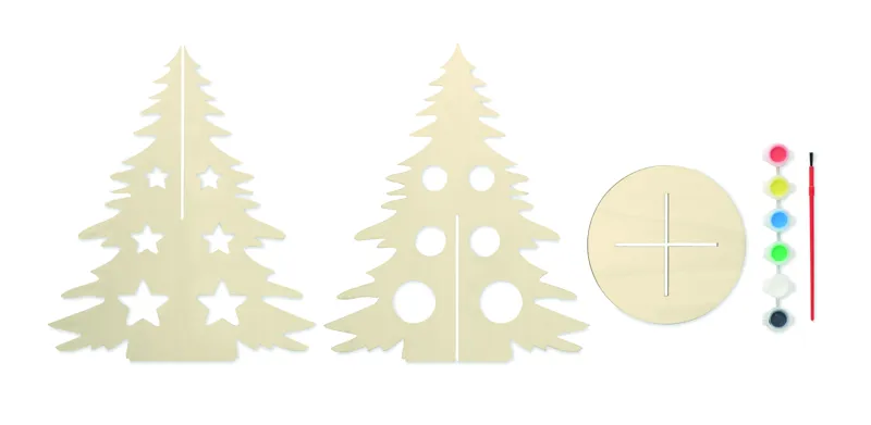 Csináld-magad fából készült karácsonyfa asztali dísz, 6 színű vízfestékkel és ecsettel. Összeszerelést igényel.