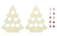 Rétegelt lemezből készült karácsonyfa asztali dísz 10 különböző függődísszel. Összeszerelést igényel.
