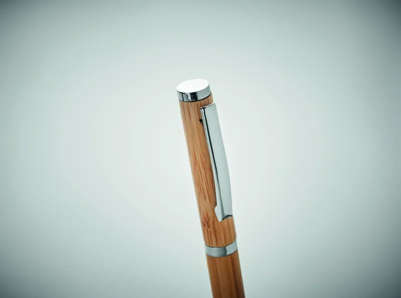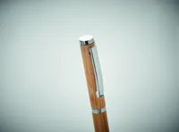 Golyóstoll bambusz tolltesttel és rozsdamentes acél szerelvényekkel. Kéken író zselés betéttel. Jegyzeteljen a fontos megbeszéléseken ezzel a zselés tollal. A fenntartható és természetes bambusz alapanyag modern és stílusos megjelenést kölcsönöz ennek az írószernek. A bambusz természetes anyag, színében, mintázatában és méretében esetenként eltérő lehet. FSC®-certified | FSC 100%, N10, FSC-C213206