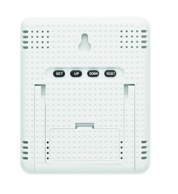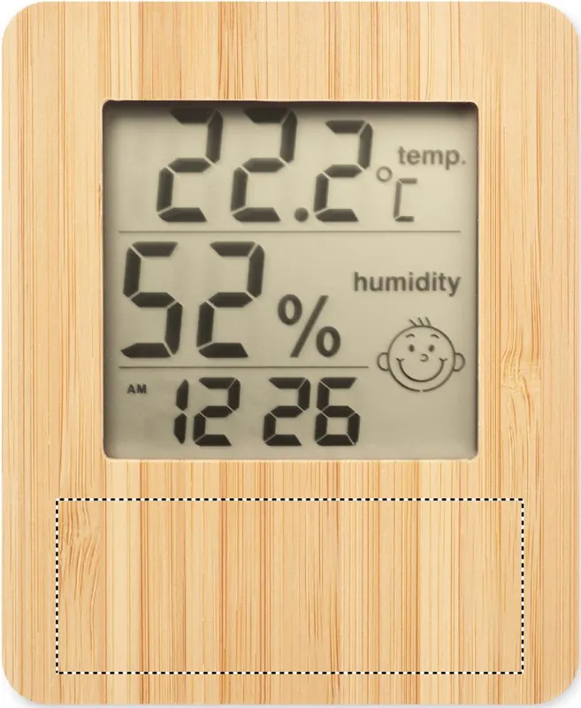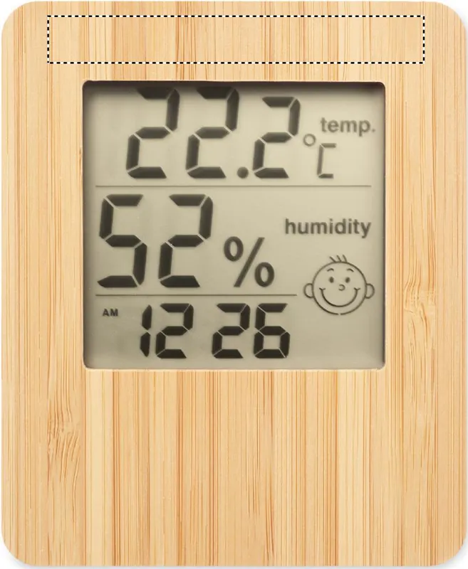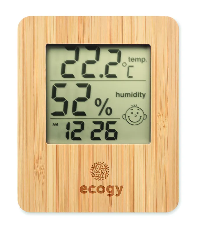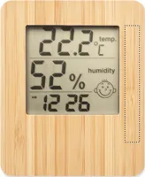 Időjárás állomás bambusz előlappal, többfunkciós hőmérővel. Óra, hőmérő, páratartalom kijelzés és naptár funkciót tartalmaz. 2 db AAA elemmel működik, elem nélkül szállítjuk. A bambusz természetes anyag, színében, mintázatában és méretében esetenként eltérő lehet.