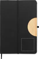 A5 jegyzetfüzet 600D RPET keménytáblás borítóval, bambusz részletekkel, okostelefon állvány funkcióval. Cérnafűzött. 160 vonalas oldal (80 lap). 70 g vastag újrahasznosított papír. Színben illeszkedő elasztikus zárópánt, tolltartó hurok és könyvjelző szalag. Vigye magával ezt a nélkülözhetetlen irodai alapdarabot a következő megbeszélésére. Virtuális találkozója lesz? Hajtsa fel a telefontartót, és támassza meg benne a készülékét, így nem kell a kezében tartania. FSC®-certified | FSC MIX CREDIT, P7.1, FSC-C213206