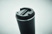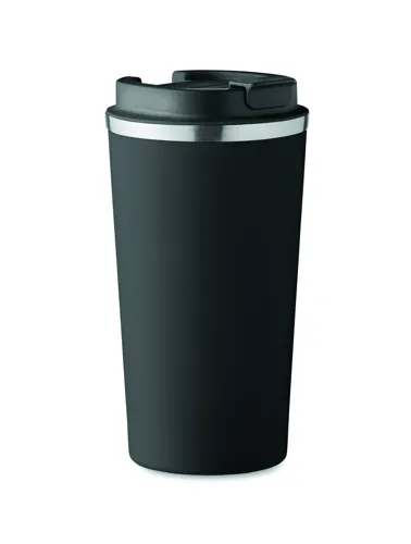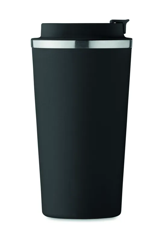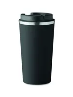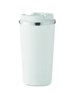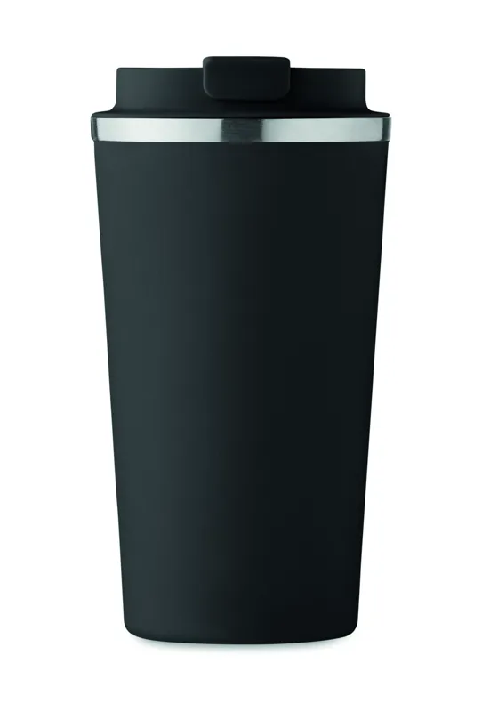 Duplafalú, újrahasznosított rozsdamentes acél (90% újrahasznosított rozsdamentes acél és 10% rozsdamentes acél) pohár PP fedéllel. Űrtartalom: 510 ml. Szivárgásmentes.