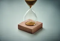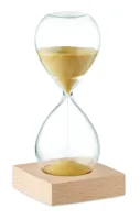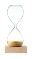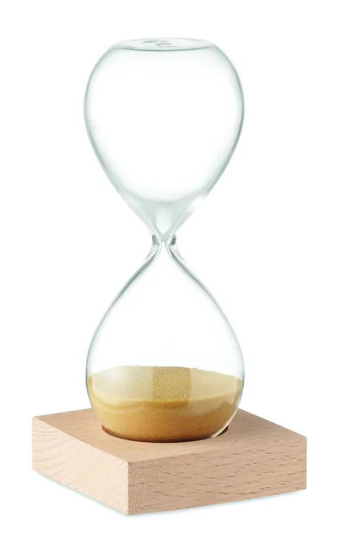 5 perces homokóra boroszilikát üvegből, bükkfa talapzattal.
