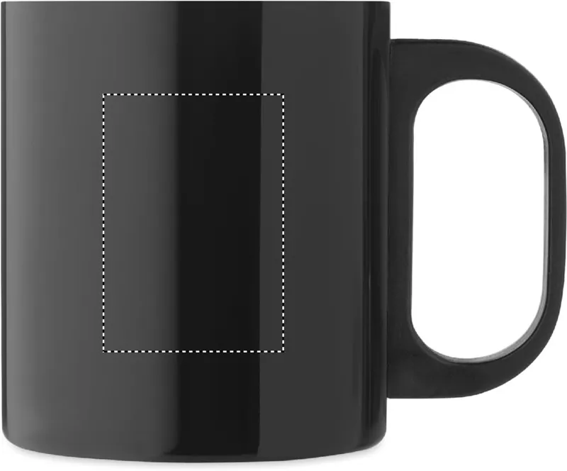 Duplafalú rozsdamentes acél bögre PP füllel. Űrtartalom: 300 ml.