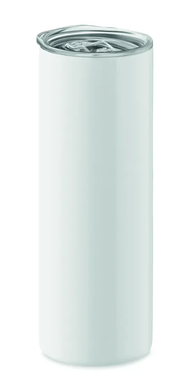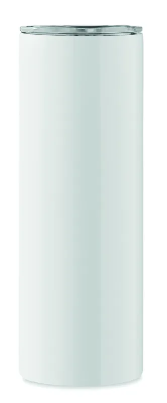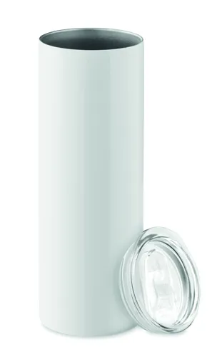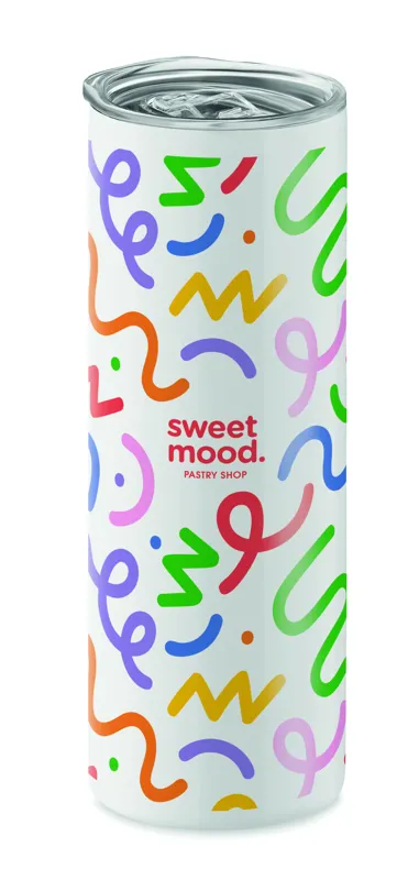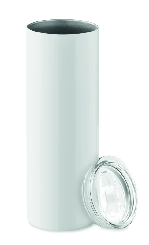 Duplafalú rozsdamentes acél pohár, ivórésszel ellátott PS fedéllel és a szublimációs nyomtatást lehetővé tévő speciális bevonattal. Űrtartalom: 590 ml.
