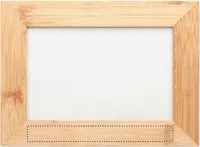 Bambusz fotókeret. Képméret: 15 x 10 cm. Álló és fekvő helyzetben is kitámasztható, valamint falra akasztható. A bambusz természetes anyag, színében, mintázatában és méretében esetenként eltérő lehet.