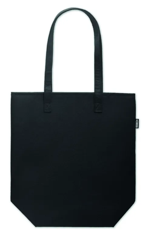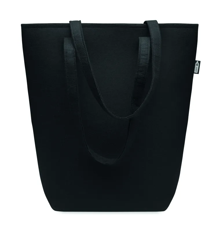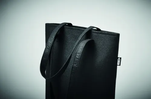 RPET filcből készült bevásárlótáska hosszú fülekkel. Filc vastagsága: 1 mm.