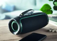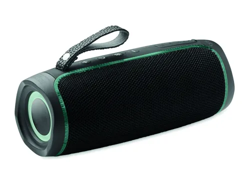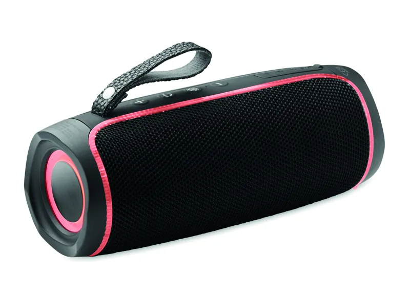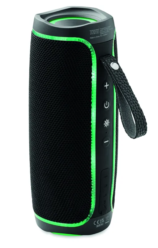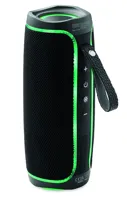 2x5W, IPX4 fröccsenésálló vezeték nélküli hangszóró, váltakozó színű LED fénnyel. 1 db újratölthető 1800 mAh lítium-ion elemmel.
