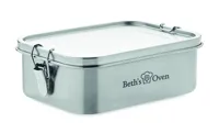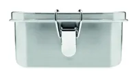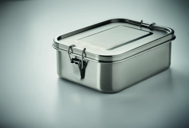 Rozsdamentes acélból készült uzsonnásdoboz erős és biztonságos oldalsó csatokkal. Belső elválasztóval. Űrtartalom: 1200 ml.