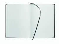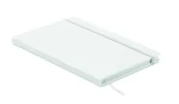 A5 jegyzetfüzet PU keménytáblás borítóval. Cérnafűzött. 200 vonalas oldal (100 lap) 80 g vastag újrahasznosított papírból. Színben illeszkedő elasztikus zárópánt és könyvjelző szalag. EU-ban gyártva.
