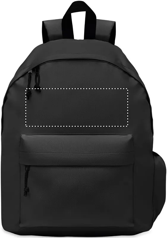 Hátizsák 600D RPET poliészterből, cipzáras külső zsebbel. Párnázott hátoldallal és oldalsó palacktartóval rendelkezik.