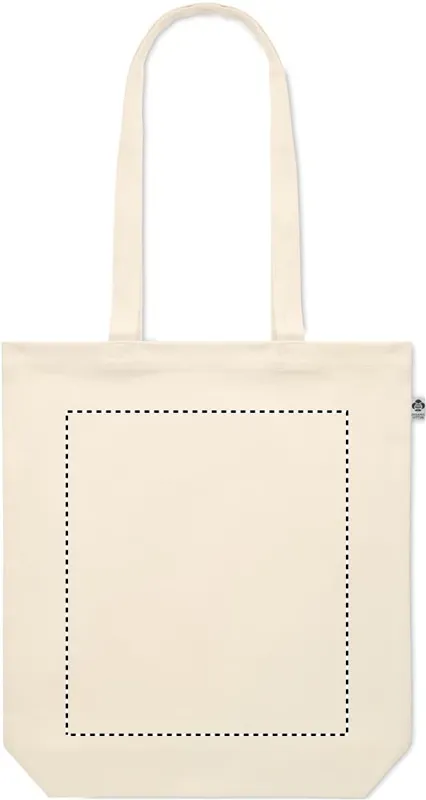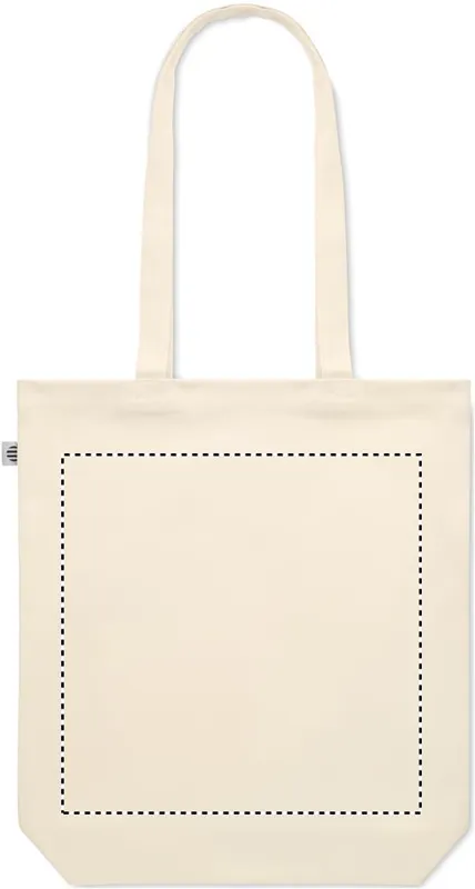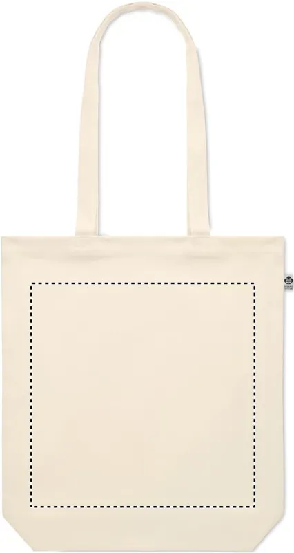Organikus vászon bevásárlótáska hosszú fülekkel és alsó toldással. 270 g vastag anyag.