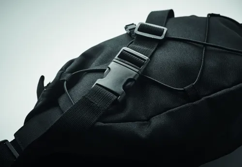 Övtáska 600D RPET poliészterből, cipzáras fő rekesszel és állítható derékszíjjal. Belső zsebbel.
