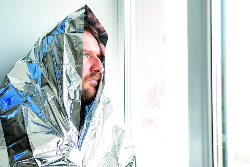Vészhelyzeti takaró RPET poliészterből készült, húzózsinóros tasakban. Takaró mérete: 130 x 210 cm.