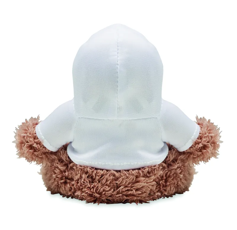 Kapucnis pulóvert viselő plüss majom. A pulóver ideális szublimációs nyomtatáshoz.