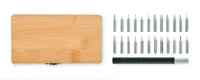 24 részes, kis precíziós csavarhúzó készlet bambusz tokban, csatos záródással. A bambusz természetes anyag, színében, mintázatában és méretében esetenként eltérő lehet.