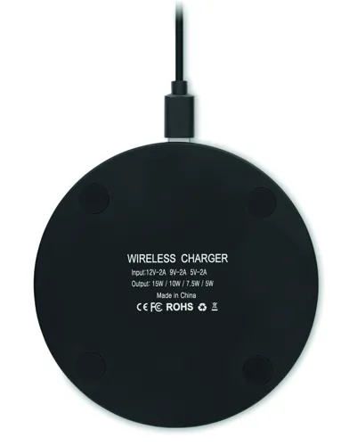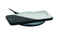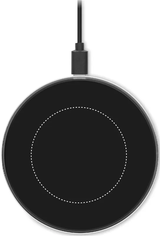 10 W alumínium vezeték nélküli töltő, üveglappal a tetején. Csatlakoztassa a készüléket számítógépéhez, és fektesse rá telefonját a töltéshez. Kék fény töltés közben. Teljesítmény: DC 9V/1.1A.