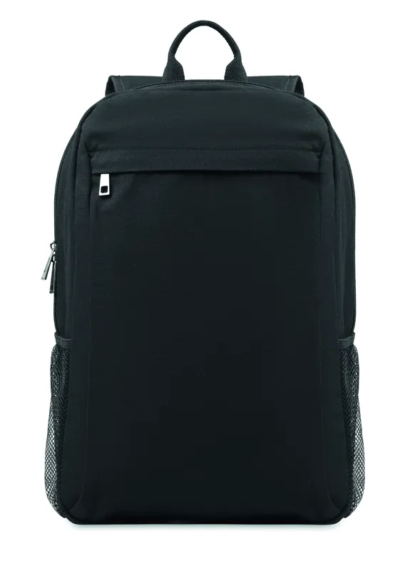 15 colos laptop hátitáska 340 g vastag mosott vászonból. Egy fő rekesszel egy 15 colos laptop számára. Cipzározható elülső zseb. Párnázott hátrész és vállpántok. Hátoldalán gurulós bőröndre illeszkedő pánttal.