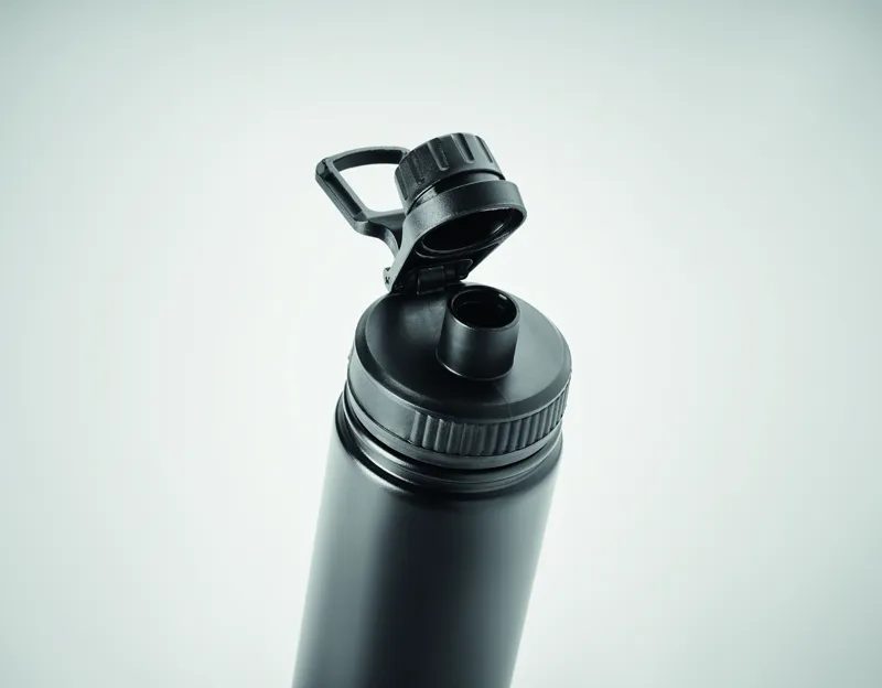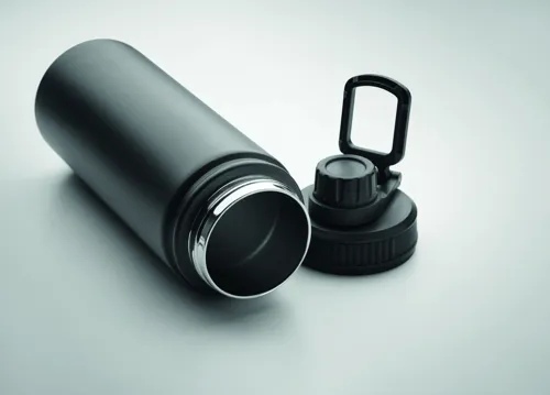 Duplafalú rozsdamentes acél termoszpalack, a fedélen kis ivókupakkal és hordozófogantyúval. Űrtartalom: 500 ml.