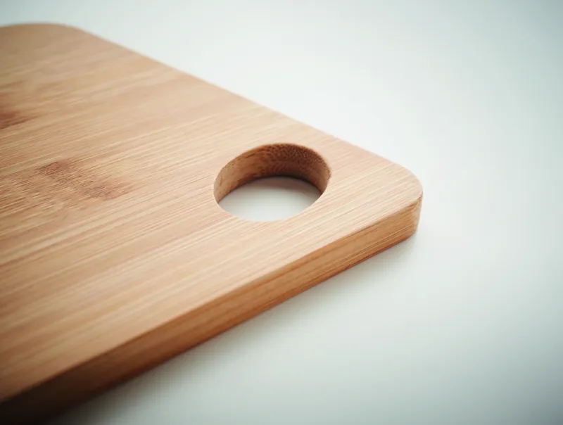 Vágódeszka bambuszból, függesztő lyukkal a sarkán. A bambusz természetes anyag, színében, mintázatában és méretében esetenként eltérő lehet.