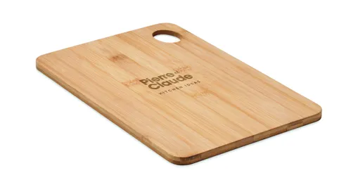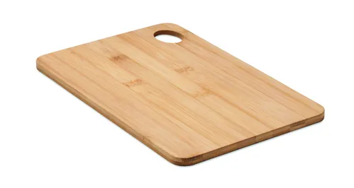 Nagyméretű vágódeszka bambuszból, függesztő lyukkal a sarkán. A bambusz természetes anyag, színében, mintázatában és méretében esetenként eltérő lehet.