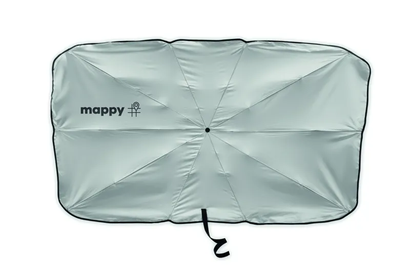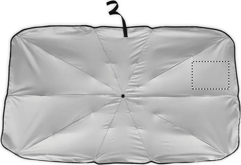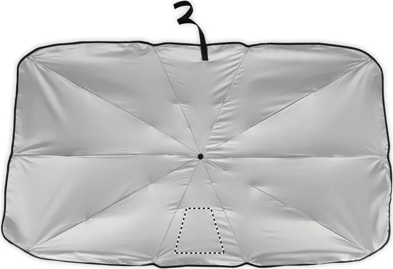Autós napernyő szélvédőre 190T nyersselyemből, 1 oldalon ezüst réteggel. Kézi nyitással és záródással.
