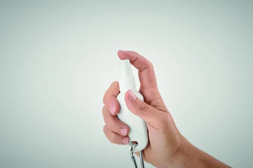 SPF25 fényvédő spray karabinerrel. Űrtartalom: 30 ml.