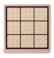 Deluxe fa sudoku tábla. Tartalmaz 99 számozott fa lapkát. Játékleírással, feladványokkal és megoldásokkal.