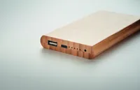 Vezeték nélküli töltő és 6000 mAh külső akkumulátor bambusz házban. Teljesítmény DC5V/2A. Jelzőfénnyel, C típusú csatlakozóval, USB töltőkábellel. A bambusz természetes anyag, színében, mintázatában és méretében esetenként eltérő lehet. C típusú be- és kimenet.
