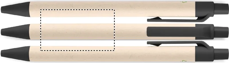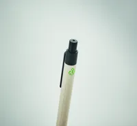 Nyomógombos golyóstoll újrahasznosított tejesdobozból készült tolltesttel (70 %-ban újrahasznosított tejesdoboz és 30 %-ban újrahasznosított papír) és PLA szerelvényekkel (100%-ban biológiailag lebomló kukoricából). Kéken író betéttel.