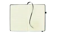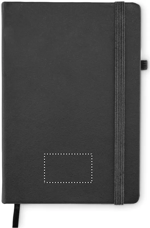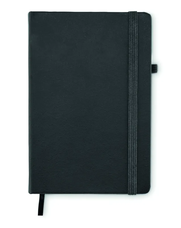 A5 jegyzetfüzet, 70%-ban fogyasztás előtti újrahasznosított bőrből és 30%-ban latexből készült PU borítóval. Cérnafűzött. 192 vonalas oldal újrahasznosított papírból (96 lap). Színben illeszkedő elasztikus zárópánt, tolltartó hurok és könyvjelző szalag.