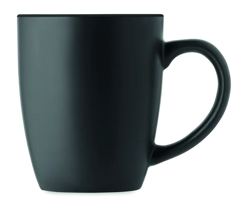 Fekete matt kerámia bögre színes fényes belső oldallal. Űrtartalom: 290 ml. Speciális bevonattal lézergravírozáshoz