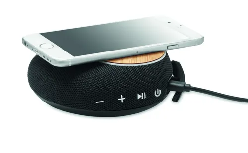 5.1 vezeték nélküli hangszóró és 4000 mAh powerbank ABS házban, bambusz részlettel. Beépített 10 W-os vezeték nélküli töltővel, okostelefon töltéséhez. Teljesítmény DC 9V/1.1A. A bambusz természetes anyag, színében, mintázatában és méretében esetenként eltérő lehet.
