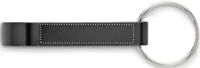 Újrahasznosított alumíniumból készült fényes kulcstartó üvegnyitóval.