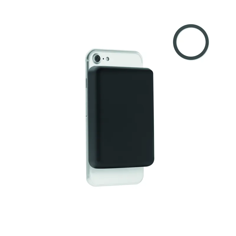 Bambusz mágneses 18 W vezeték nélküli töltő és 5000 mAh külső akkumulátor. Teljesítmény: DC 9V/2,22A (18 W) ideális a gyorstöltéshez. További mágneses fémgyűrűvel, amely támogatja más, nem mágneses, vezeték nélküli tölthető telef