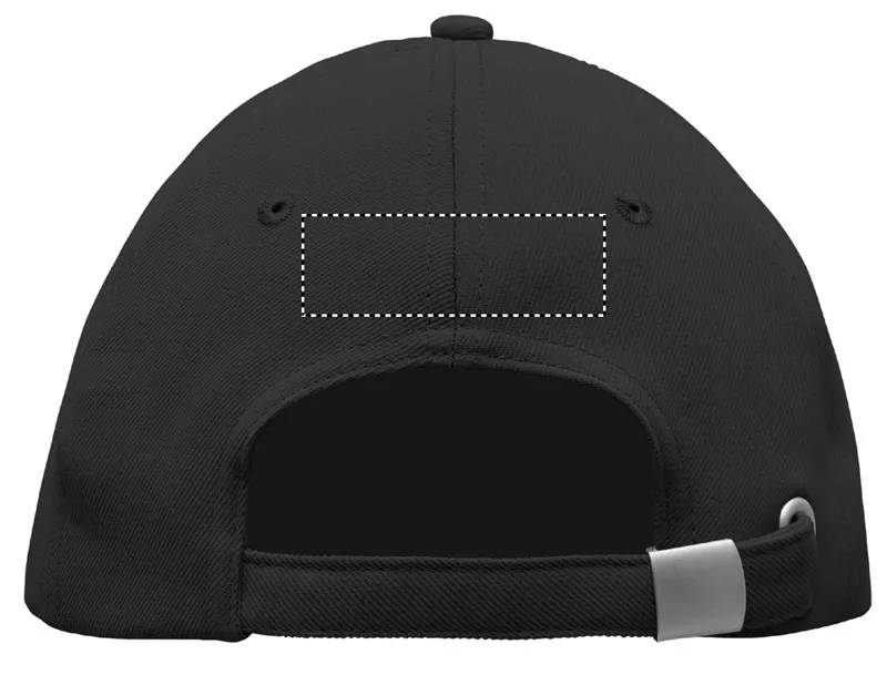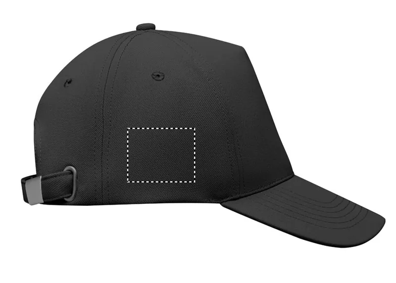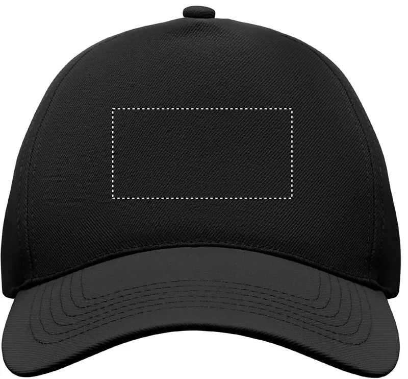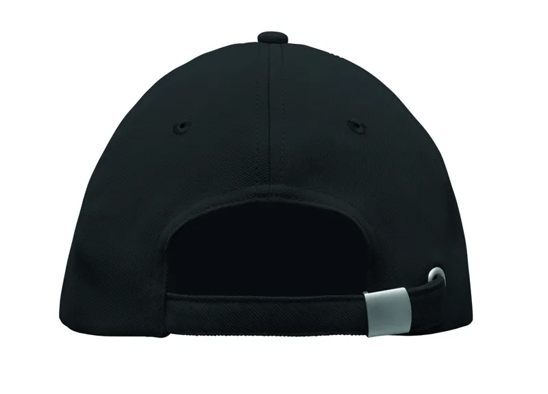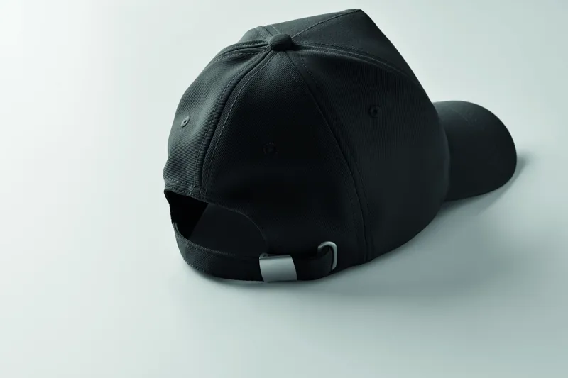 5 paneles baseball sapka 210 g vastag RPET poliészterből, ezüst színű acél csattal. 4 hímzett, színben illeszkedő szellőzőlyukkal. Méret 7 1/4.