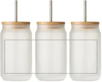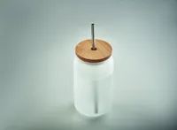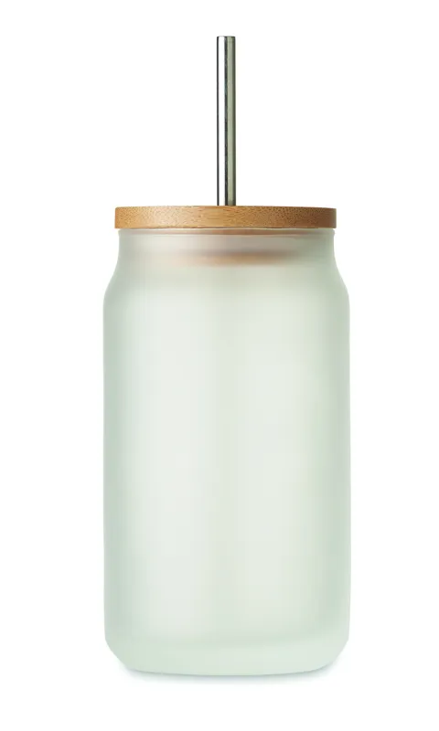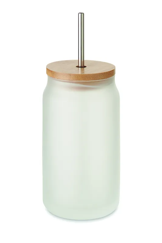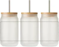 Befőttesüveg pohár speciális, szublimációs nyomtatást lehetővé tévő bevonattal, bambuszfedéllel. Rozsdamentes acél szívószállal. Űrtartalom: 400 ml. A bambusz természetes anyag, színében, mintázatában és méretében esetenként eltérő lehet.