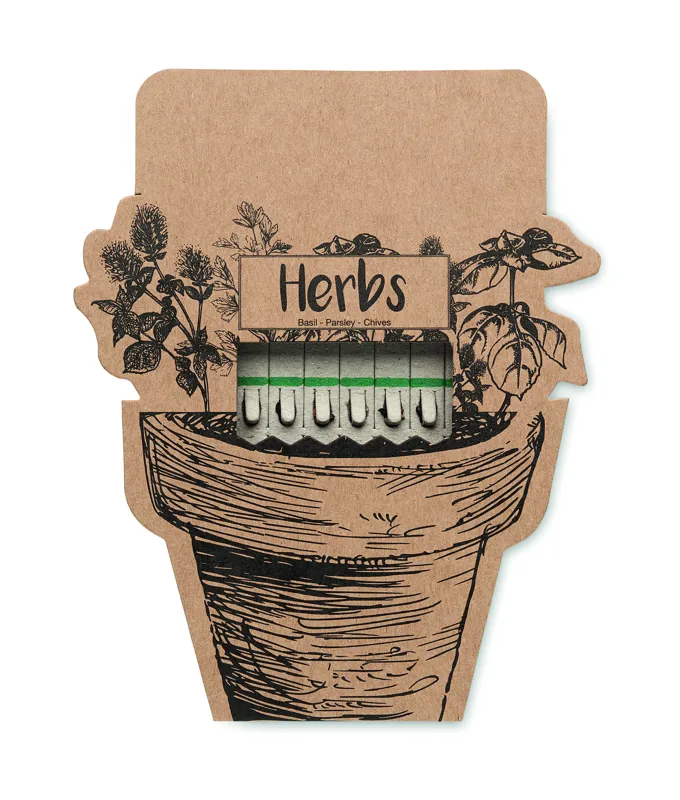 Fűszernövény magokat tartalmazó ültető pálcikák metélőhagyma-, bazsalikom- és petrezselyemmagokkal. EU-ban gyártva.