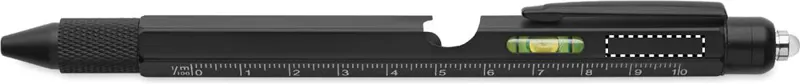 Rozsdamentes acél, vízmértékes, csavarmechanikás golyóstoll vonalzóval, érintőheggyel, csillag- és laposfejű csavarhúzó bitekkel, LED lámpával. A működéshez szükséges 3 db AG elemmel szállítjuk. Kéken író betéttel.