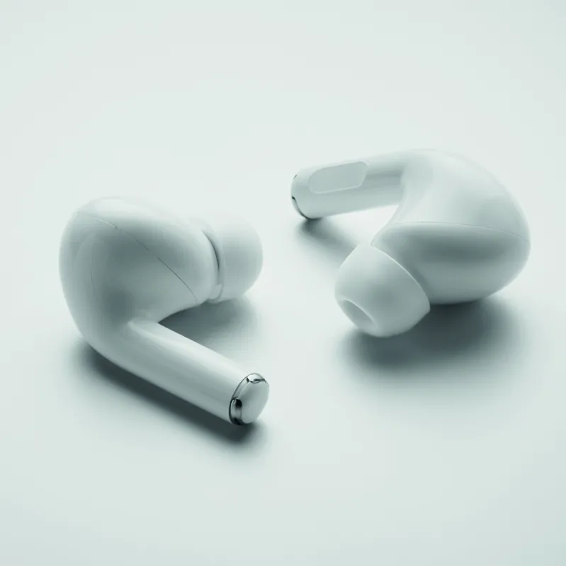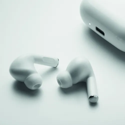 ABS TWS (True Wireless Stereo) 5.3 vezeték nélküli fülhallgató mikrofonnal és 30 mAh beépített akkumulátorral. C típusú bemenet. Üzemidő: kb. 3 óra. Automatikus párosítás. C típusú töltőkábellel és 180 mAh töltőállomással.