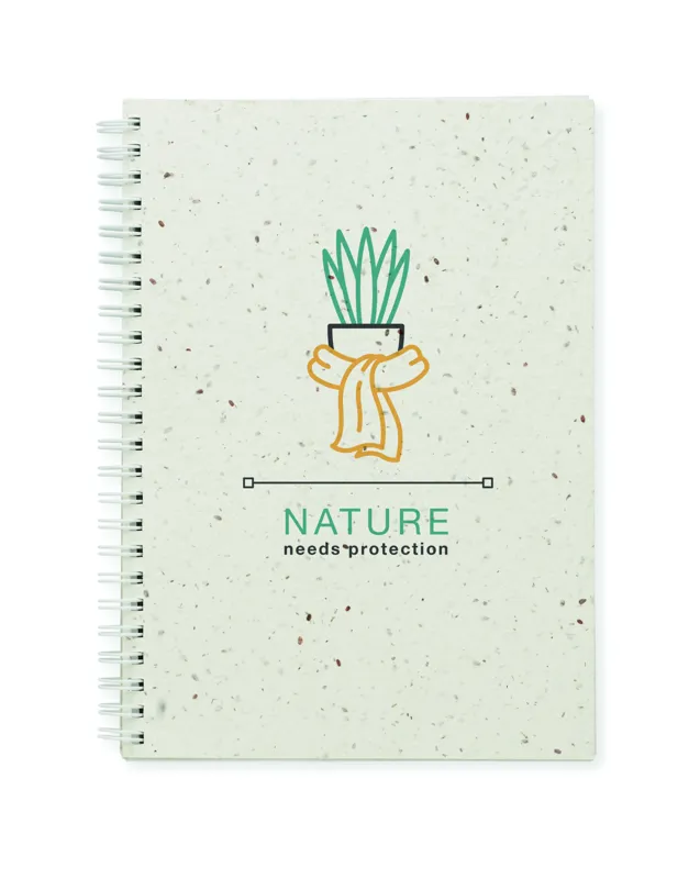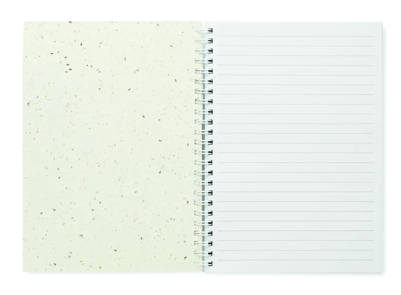 A5 magpapír borítójú jegyzetfüzet. Spirálozott. 200 újrahasznosított vonalas oldal (100 lap).