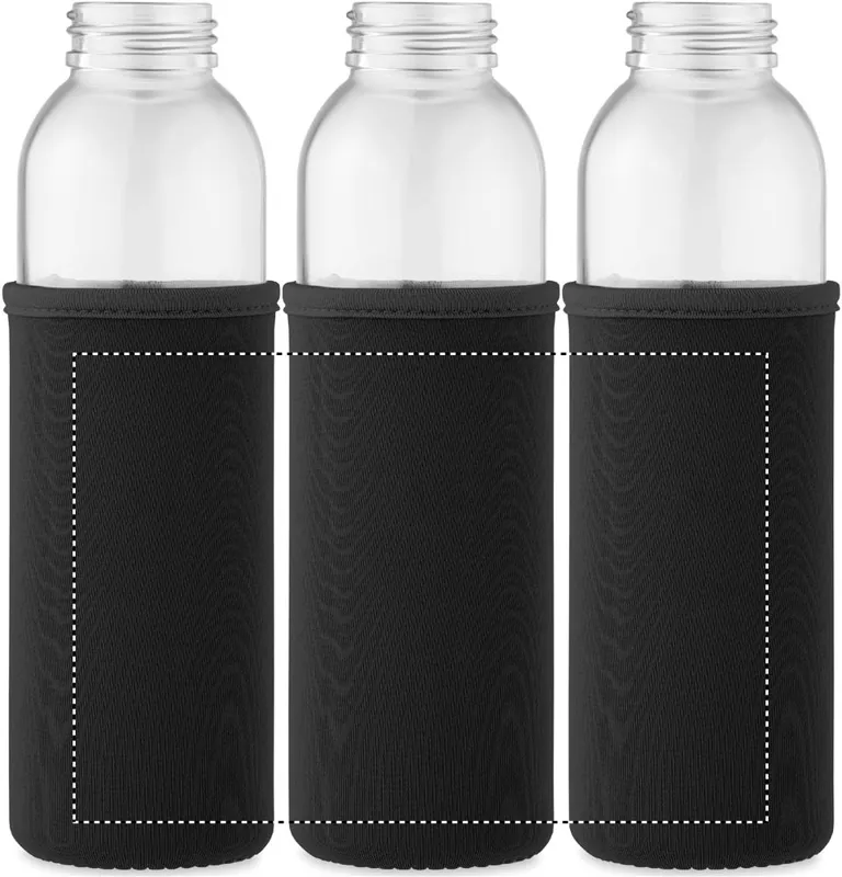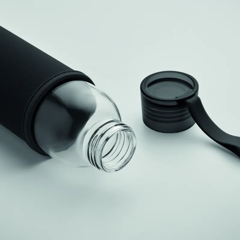 Újrahasznosított üveg palack neoprén tokkal, PP fedéllel, szilikon akasztóval. Szivárgásmentes. Űrtartalom: 500 ml.