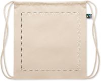 Fairtrade pamut húzózsinóros táska. 180 g vastag anyag. Ez a termék OEKO-TEX® STANDARD 100 tanúsítvánnyal rendelkezik.