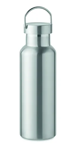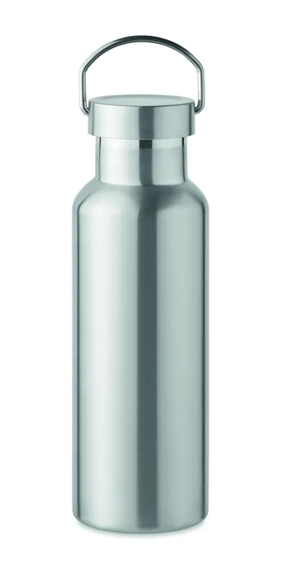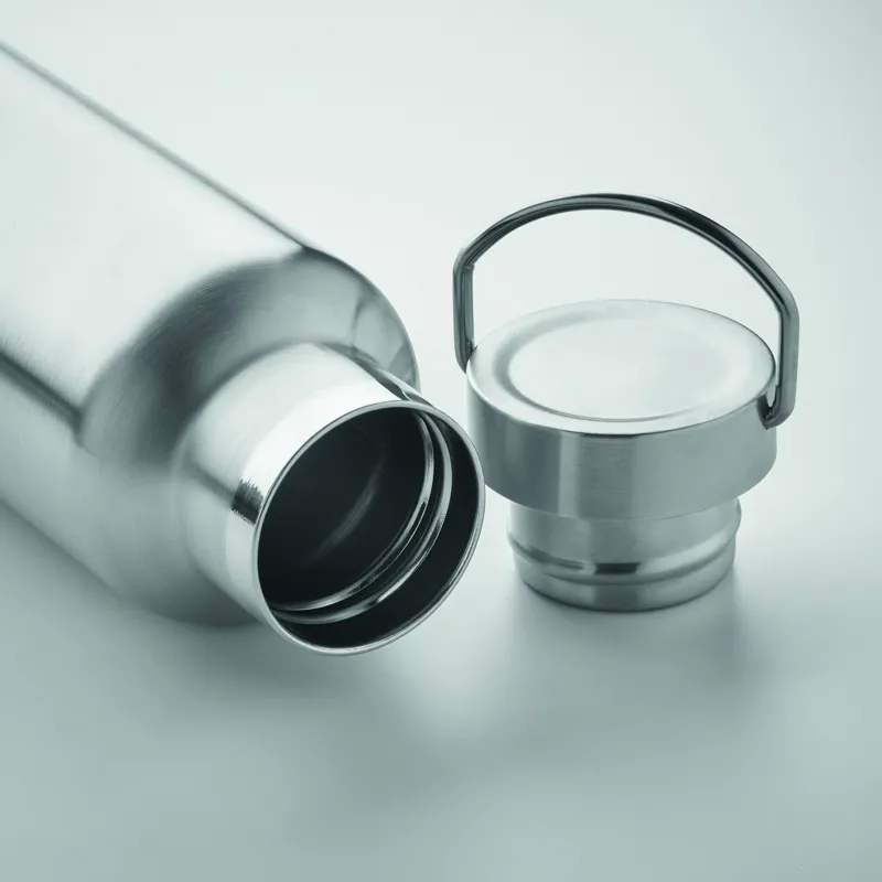 Duplafalú termoszpalack újrahasznosított rozsdamentes acélból (90% újrahasznosított rozsdamentes acél és 10% rozsdamentes acél), fogantyúval ellátott fedéllel. Szivárgásmentes. Űrtartalom: 500 ml.