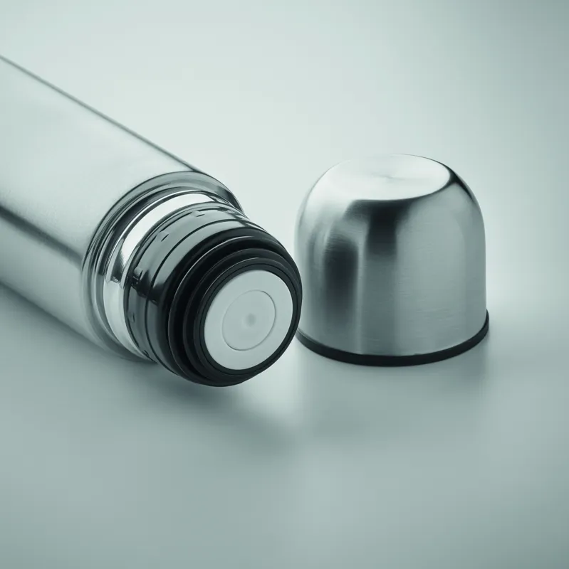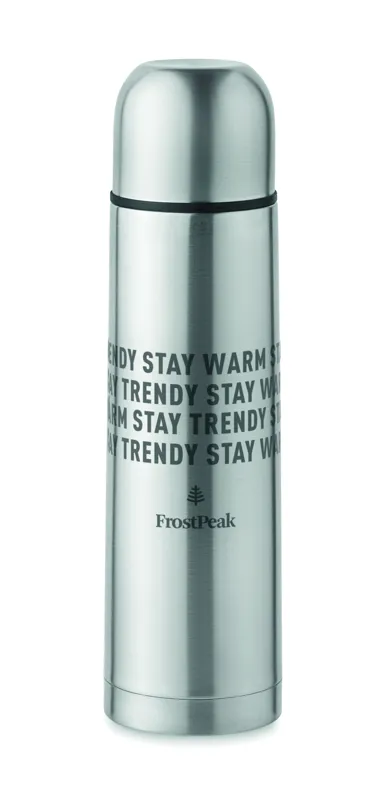 Duplafalú, újrahasznosított rozsdamentes acél (90% újrahasznosított rozsdamentes acél, 10% rozsdamentes acél) termoszpalack. Szivárgásmentes. Űrtartalom: 500 ml.