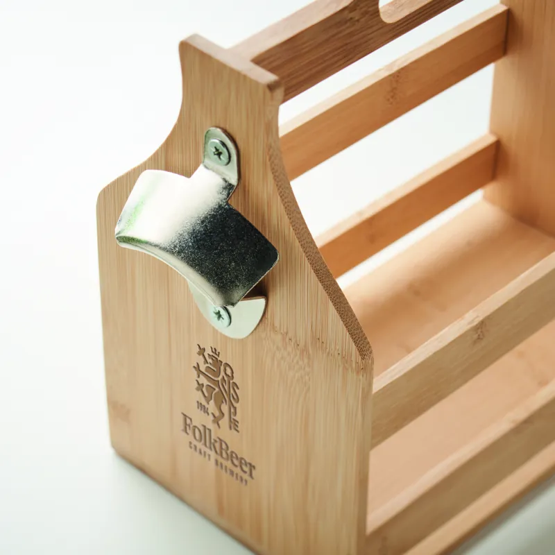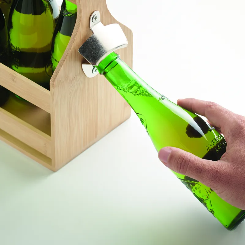 6 db, 330 ml-es sörösüveg tárolására alkalmas rekesz vagy hordozóláda bambuszból, fém palacknyitóval. Sör nélkül szállítjuk. A bambusz természetes anyag, színében, mintázatában és méretében esetenként eltérő lehet. Szivárgásmentes. FSC®-certified | FSC 100%, N5.7, FSC-C213206
