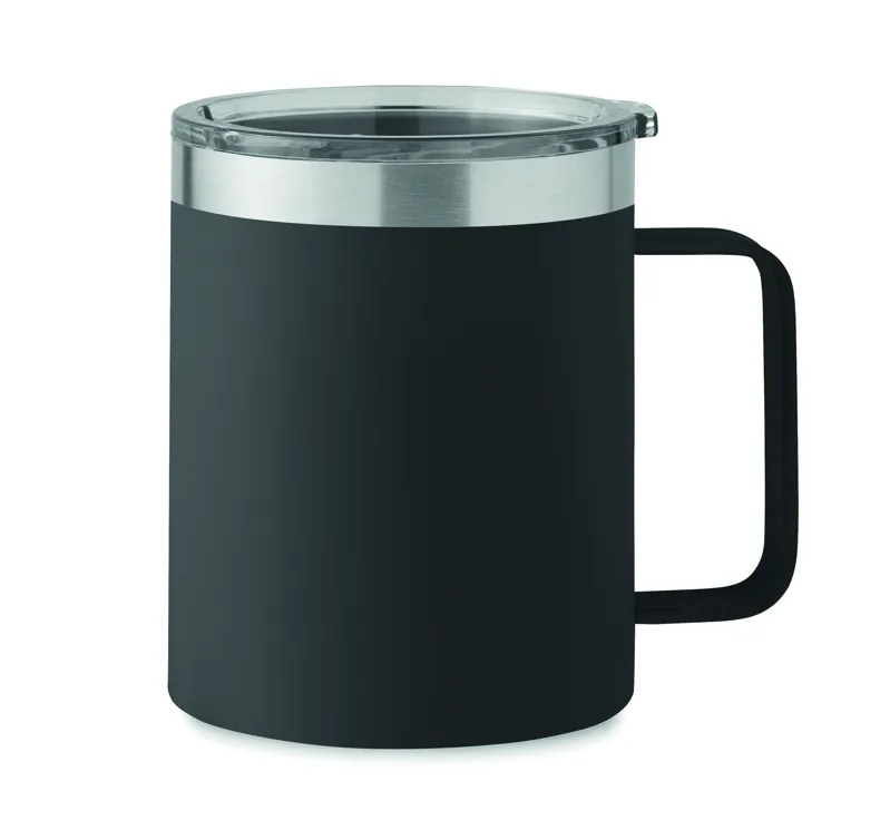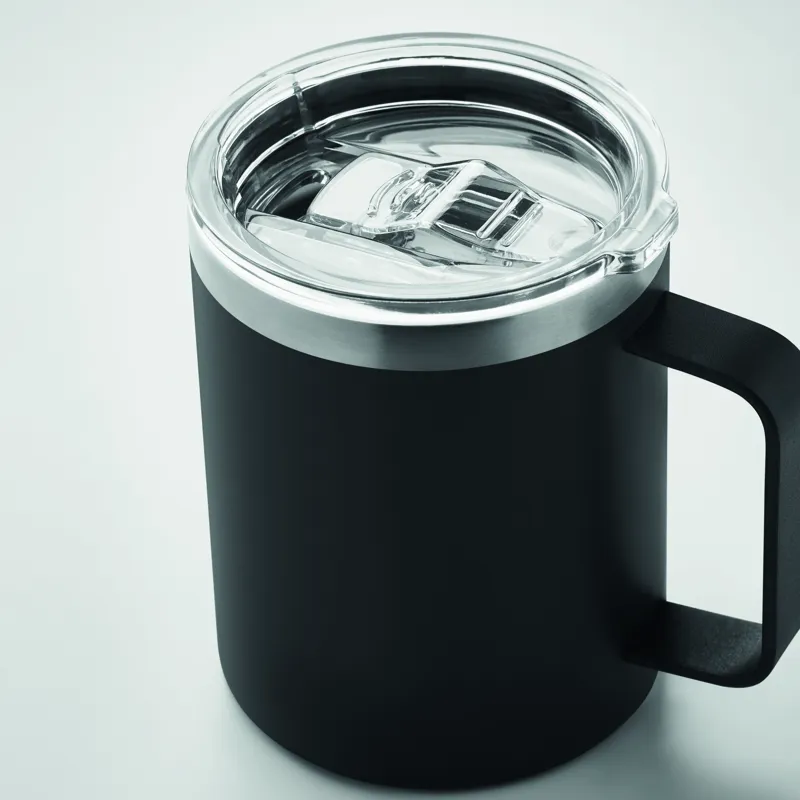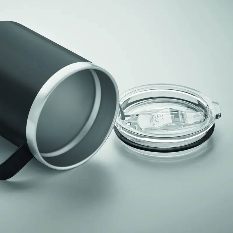 Duplafalú, újrahasznosított rozsdamentes acél (90% újrahasznosított rozsdamentes acél, 10% rozsdamentes acél) bögre csúsztatható ivónyílással ellátott fedéllel. Űrtartalom: 300 ml.